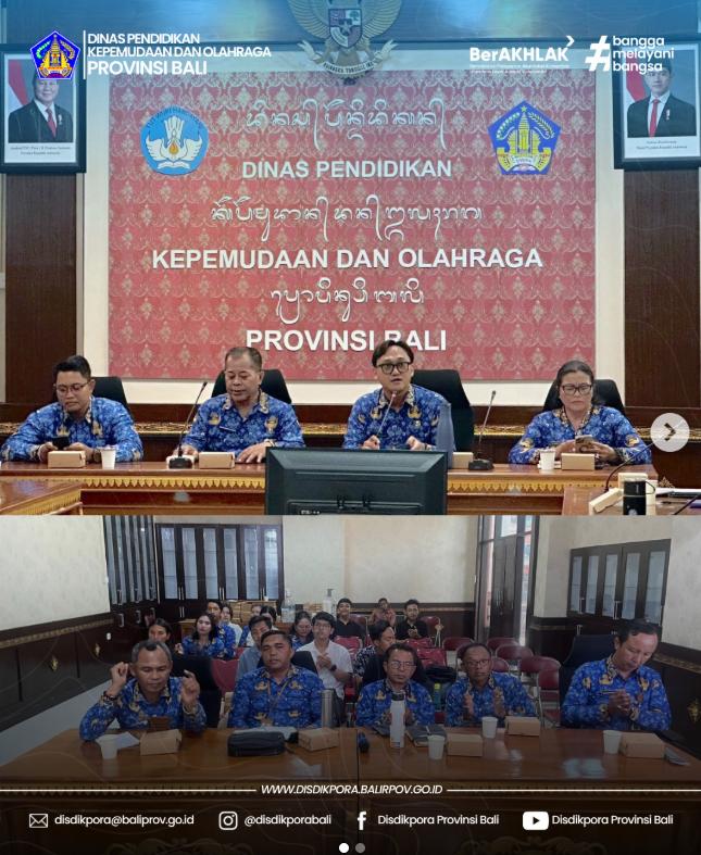 Telah terlaksana acara Rapat Koordinasi yang dipimpin oleh Kabid PSMK, Kabid Pemuda dan Olahraga, Kabid PK& PLK dan Ketua Tim Peserta Didik Bidang PSMA, dihadiri oleh Ketua Musyawarah Kerja Kepala Sekolah (MKKS) Jenjang SMA/SMK/SLB Se- Kabupaten/Kota se-Bali dan perwakilan Pengawas Manajerial Disdikpora Provinsi Bali serta Industri terkait pada Selasa, 28 Oktober 2025 bertempat di Ruang Sidang Jnana Kerti Kantor Dinas Pendidikan Kepemudaan dan Olahraga Provinsi Bali.