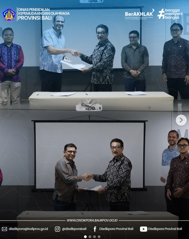 Kepala Dinas Pendidikan Kepemudaan dan Olahraga Provinsi Bali, Dr. KN Boy Jayawibawa didampingi Kabid Pembinaan SMK, I Gusti Ngurah Crisna Adijaya, S.STP., MM menghadiri acara Signing Grand MoU “Link and Super Match” Disdikpora Provinsi Bali dengan Accor Area Bali-Lombok.