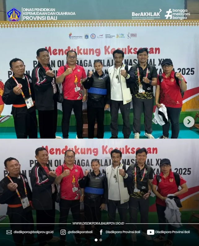 Kadis Dikpora Provinsi Bali, Dr KN Boy Jayawijaya melaksanakan kunjungan ke Cabor Silat Atlet Kontingen Daerah Bali untuk memberikan Dukungan dan Apresiasi pada Pelaksanaan POPNAS XVII pada Kamis, 06 November 2025 di Jakarta.