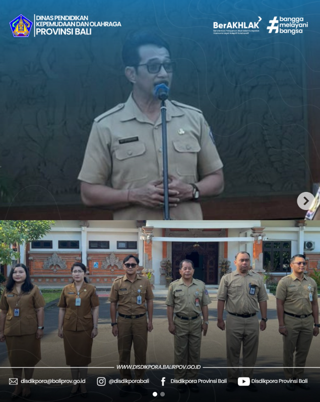 Kadis Dikpora Provinsi Bali memimpin Apel Disiplin di lingkungan Disdikpora Provinsi Bali yang di ikuti oleh seluruh ASN dan Non-ASN pada Senin, 20 Oktober 2025 bertempat di halaman depan kantor Disdikpora Provinsi Bali.